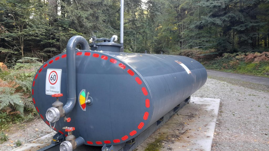 Und in der erweiterten Umgebung haben wir mit dem Baden-Badener Stadtwald den größten Waldbesitz in kommunaler Hand in Baden-Württemberg. Mit Regionen und Gebieten, die in trockenen Phasen nicht selten in der höchsten Waldbrandgefahrenstufe einzuordnen sind. Der smarte Löschwasserbehälter im Bild hilft vielleicht, im Krisenfall die Feuerwehr bei ihrer Arbeit zu unterstützen.
